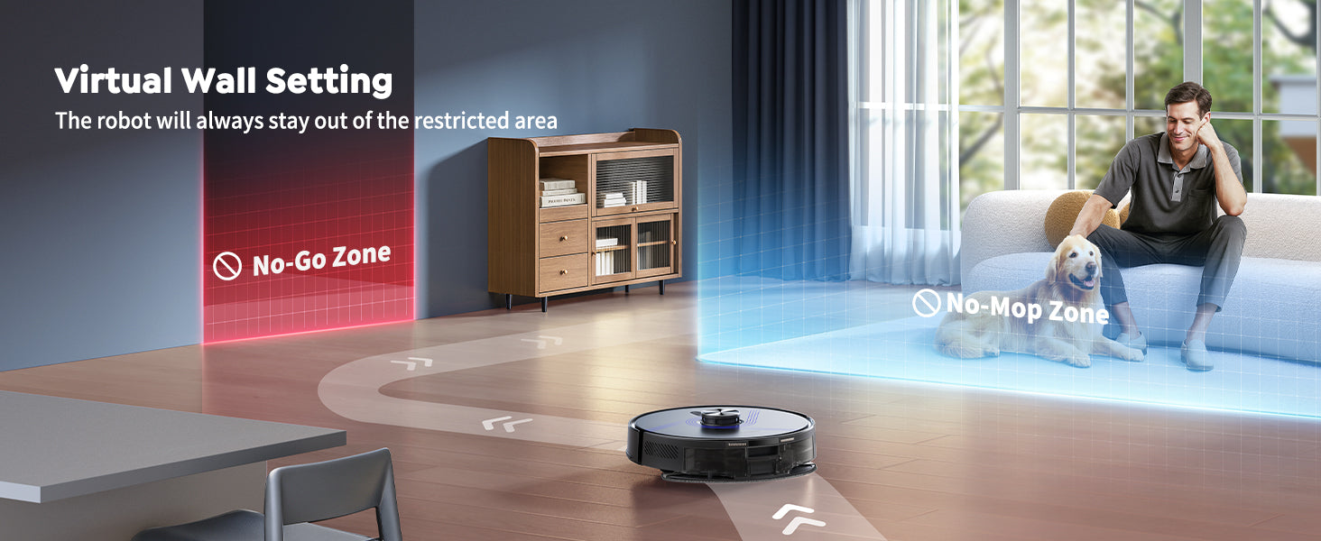 【Perfect Cleaning for Hard, Wood, and Carpets】This robot vacuum boasts a powerful 5000Pa suction force for a thorough cleaning of hard, wood, and carpet floors. Users can flexibly choose from a variety of cleaning modes, including vacuuming, mopping, or a combination, depending on room type and soiling level. 【High-Precision LiDAR Laser Sensor】This robot vacuum is equipped with a high-precision LiDAR laser sensor that captures its surroundings in real time and creates a detailed room map. The system automatically plans an efficient cleaning route, minimizing duplicate cleaning or missed areas, ensuring comprehensive coverage. 【Easily Cleans Under Furniture】Its ultra-flat design allows it to clean under beds, sofas, and other low furniture. Its flexible design ensures the robot vacuum can easily reach hard-to-reach areas, even narrow aisles. 【Remote Control】Using a compatible app, users can view a real-time room map, define no-go zones and cleaning areas, schedule cleanings, or select specific rooms. Remote monitoring and control is supported, even when you're away. 【Multiple Map Storage for Ease of Use】This robot vacuum with mopping function can store up to five floor maps and automatically recognize rooms. With intuitive controls, customizable settings, and an automatic charging function, it's easy to use and suitable for everyday use in any living area. 【The Ideal Gift for Modern Living】Experience the magic of the holidays with a thoughtful gift that brings joy and warmth. Whether hanging it under the Christmas tree or ringing in the new year, this special gift will brighten the holidays and create unforgettable memories.