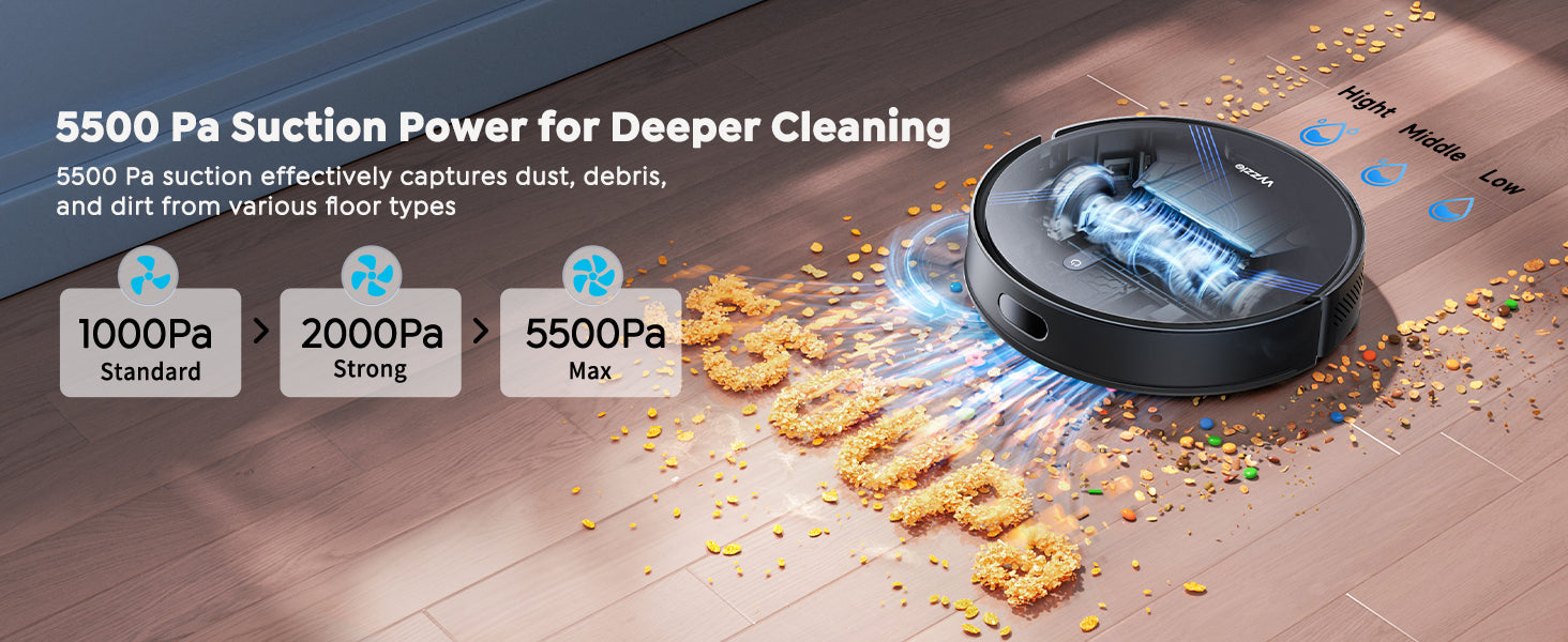 Combining powerful suction, smart navigation, and advanced convenience features, the Vyzzle D10 robot vacuum is an essential tool for keeping your home clean and healthy.